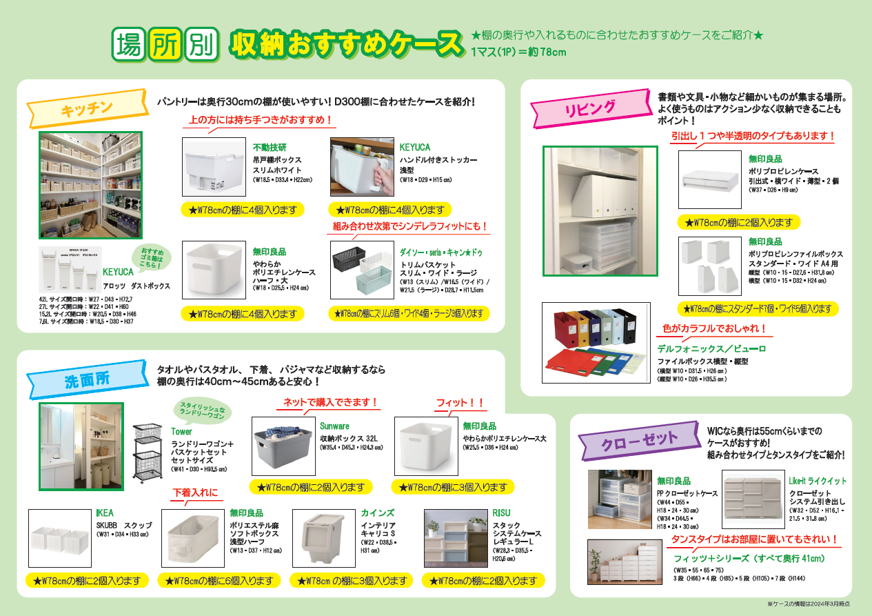 将来のシミュレーション: 家族構成の変化(お子様の誕生・成長)、趣味の追加、ライフステージの変化によって「今後増える予定の荷物」までを見越して計画します。
