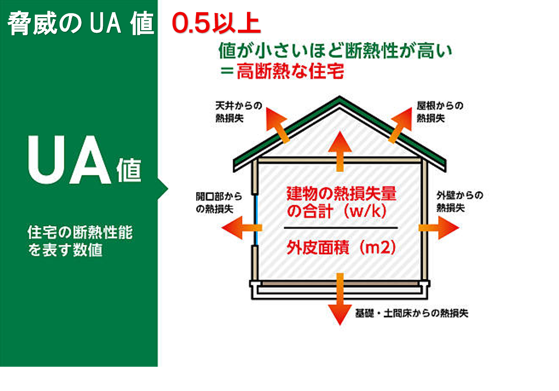 ZEH(ゼッチ)基準。★アークプランはここを余裕でクリア(UA 0.52) |