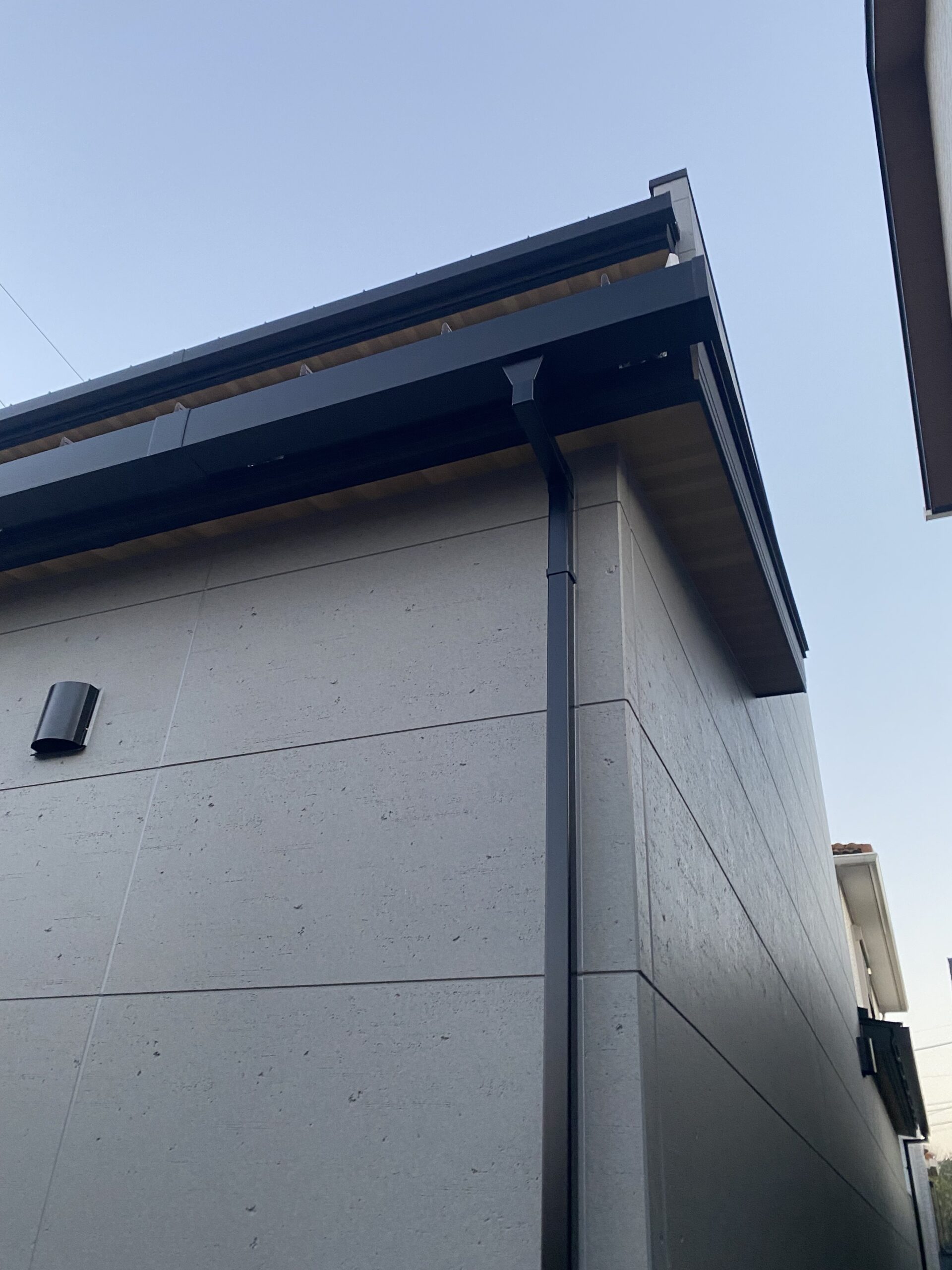 これまでの軒樋は丸みを帯びたものが主流でしたが、現代的なシャープな屋根には、直線的なデザインがよく映えます。