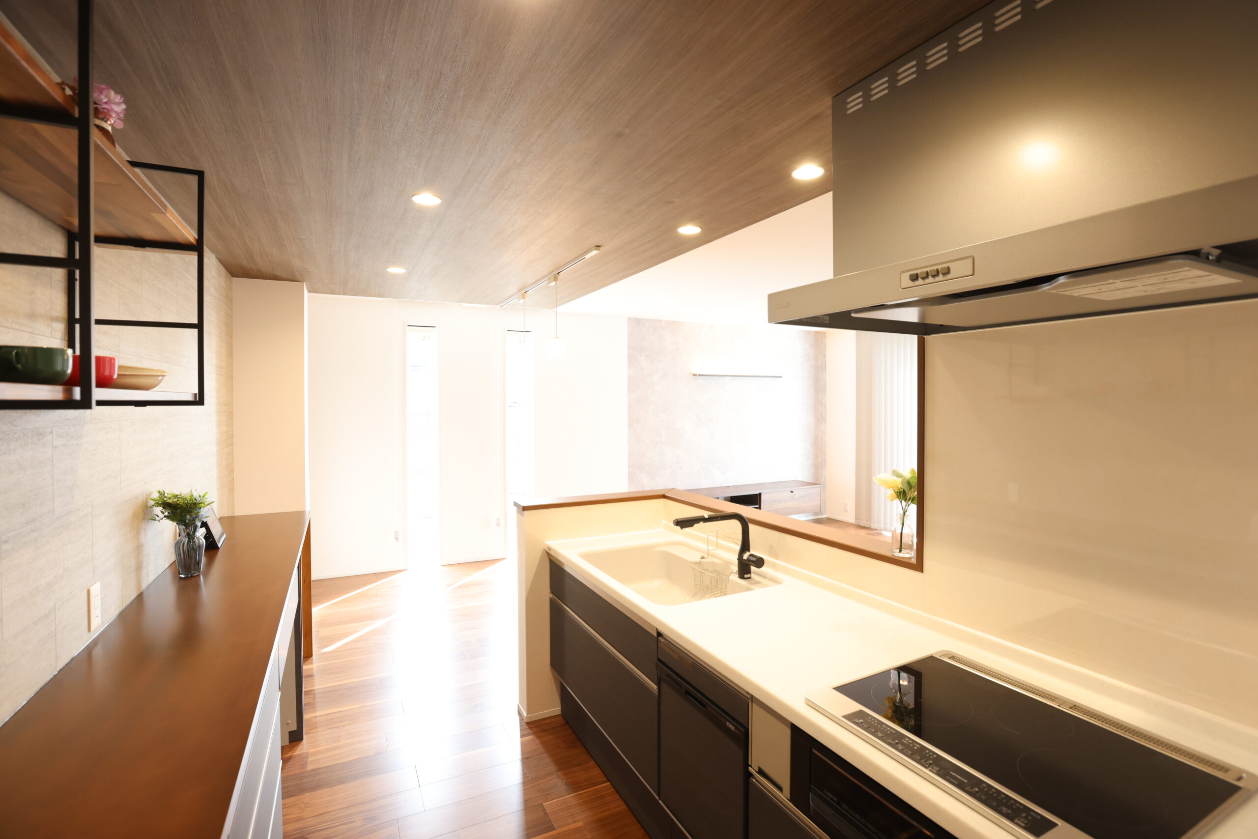 Aicaのスタイリッシュカウンターなど、一点豪華主義で「建築家住宅」の質感を出す。