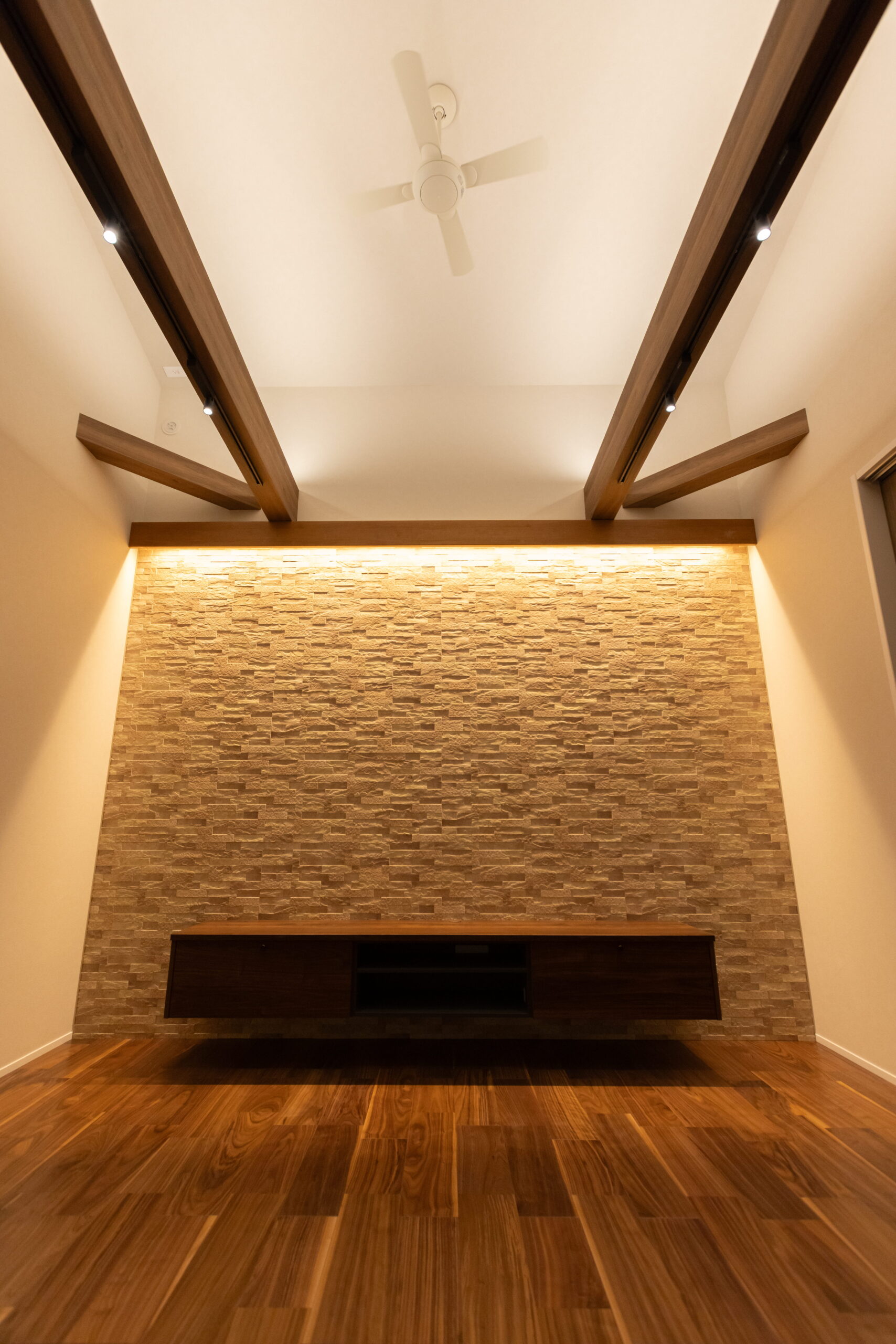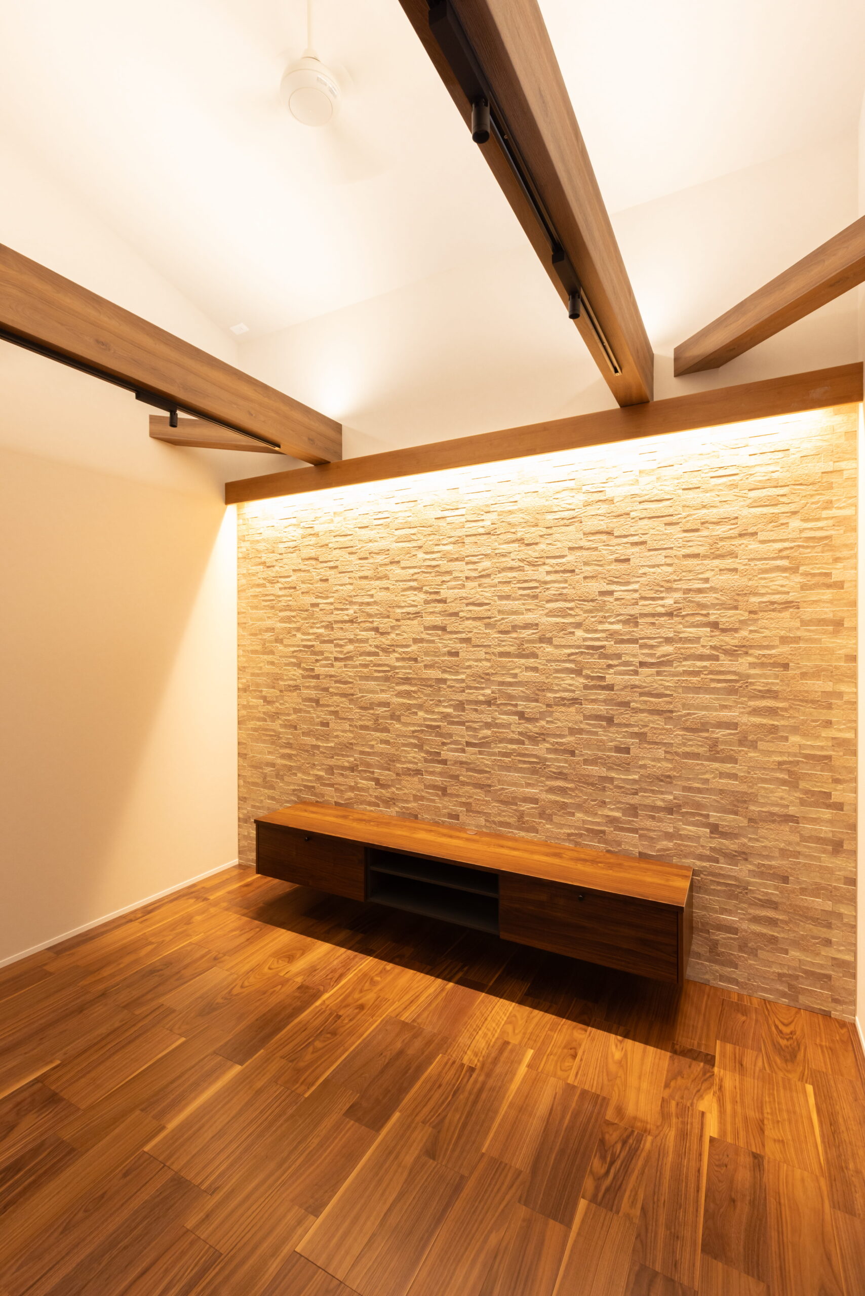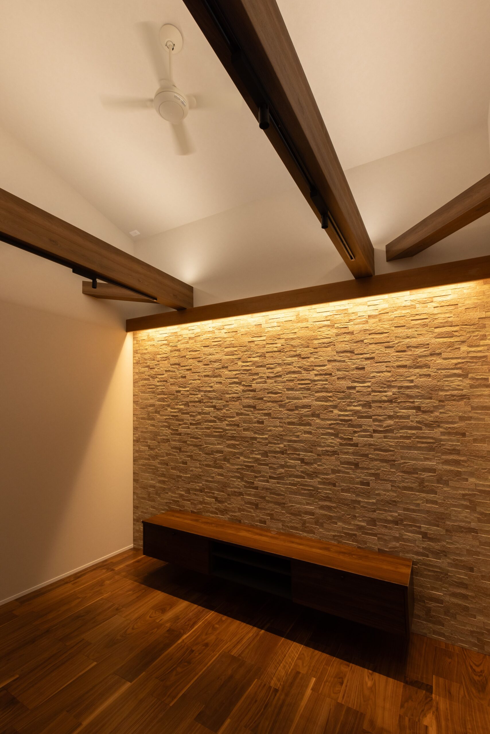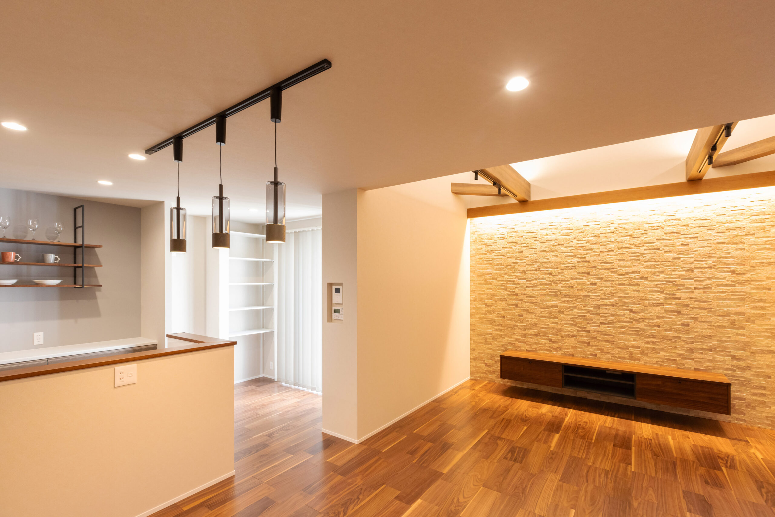 素材の質感や照明計画にも細部まで配慮し、昼と夜で異なる表情を楽しめる住まいが完成しました。